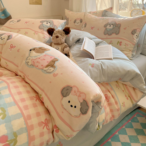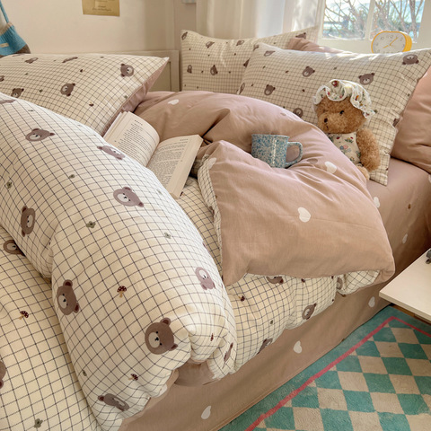 AB tarafı katı fırçalanmış pamuk çarşaf yastık kılıfı nevresim kullanımı tüm pamuk dört parçalı Set