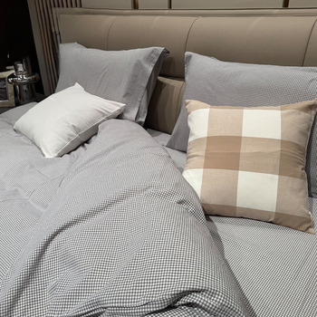 Set di biancheria da letto in cotone lavabile a 4 pezzi con motivo a griglia minimalista copripiumino in cotone per camera degli ospiti
