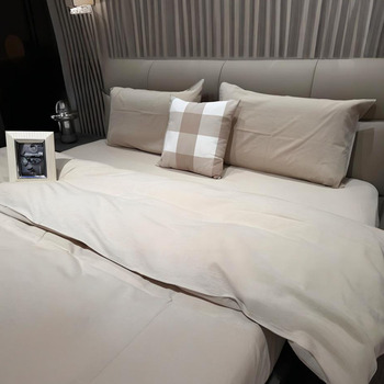 Jacquard in tinta unita copripiumino in tinta unita federe per Hotel di qualità traspirante uso personalizzato in cotone lavabile Set di biancheria da letto 4 pezzi